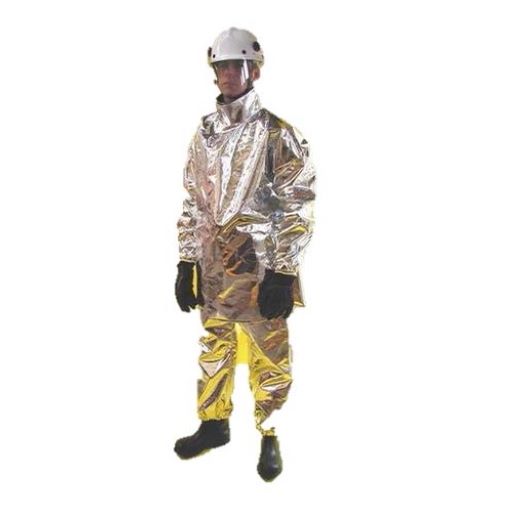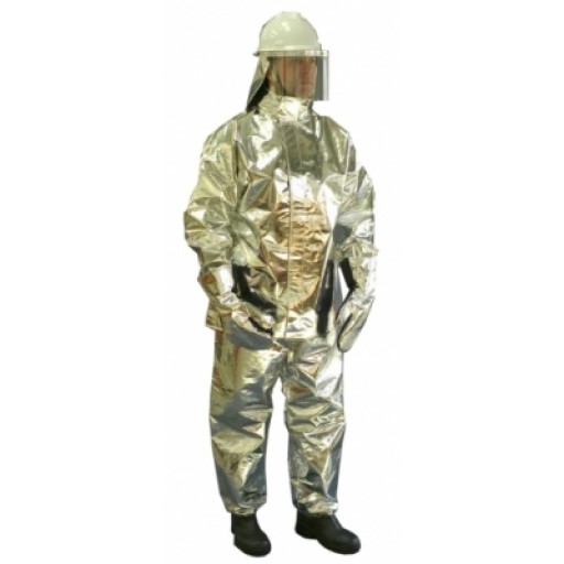 Flameguard Two-Piece Aluminised Fireman Suit is designed to protect a firefighter from high temperatures, especially near fires of extreme temperature.