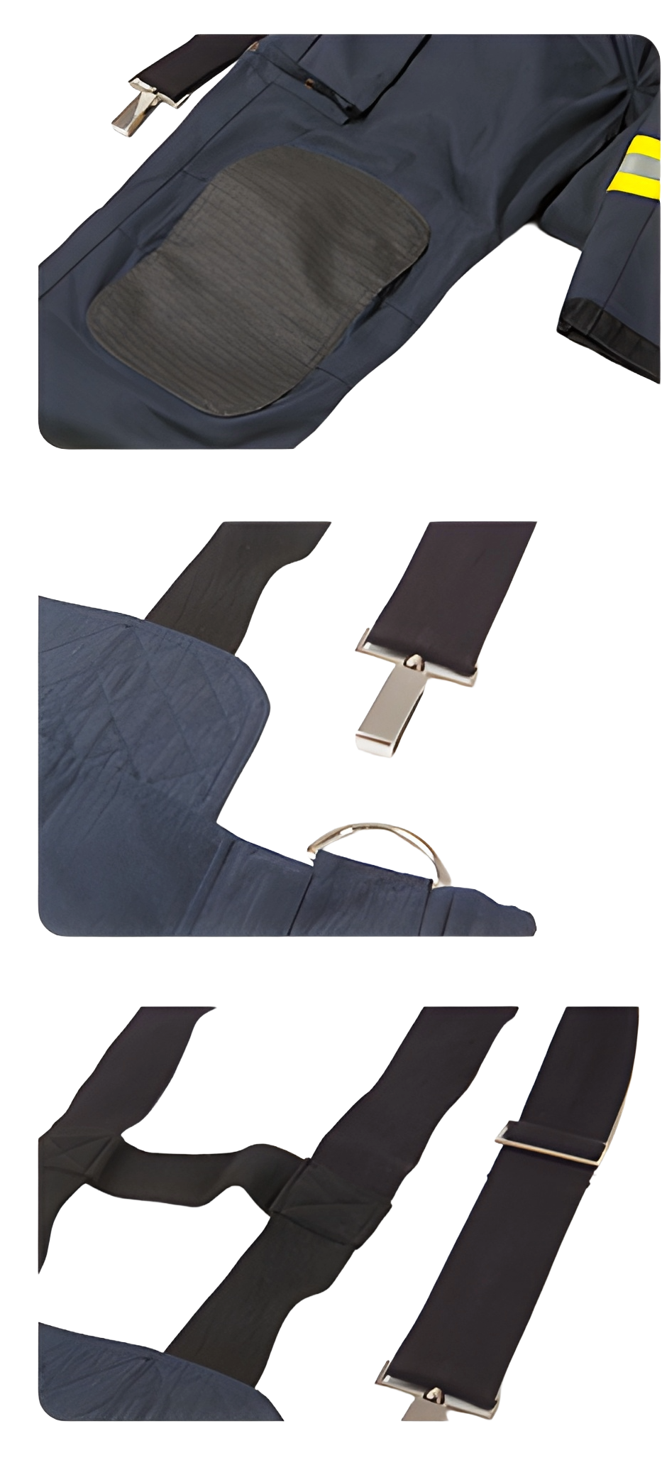 • Reinforced patches at knee: Abrasion resistance and flame retardant more effective knee protection