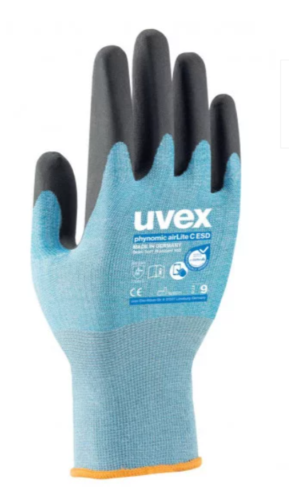 The uvex phynomic airLite C ESD is the lightest safety glove in its class and offers a noticeable difference in wearer comfort. A combination of high sensitivity and tacticity, making it perfect for precision and handling fine components well with touchscreen capability.